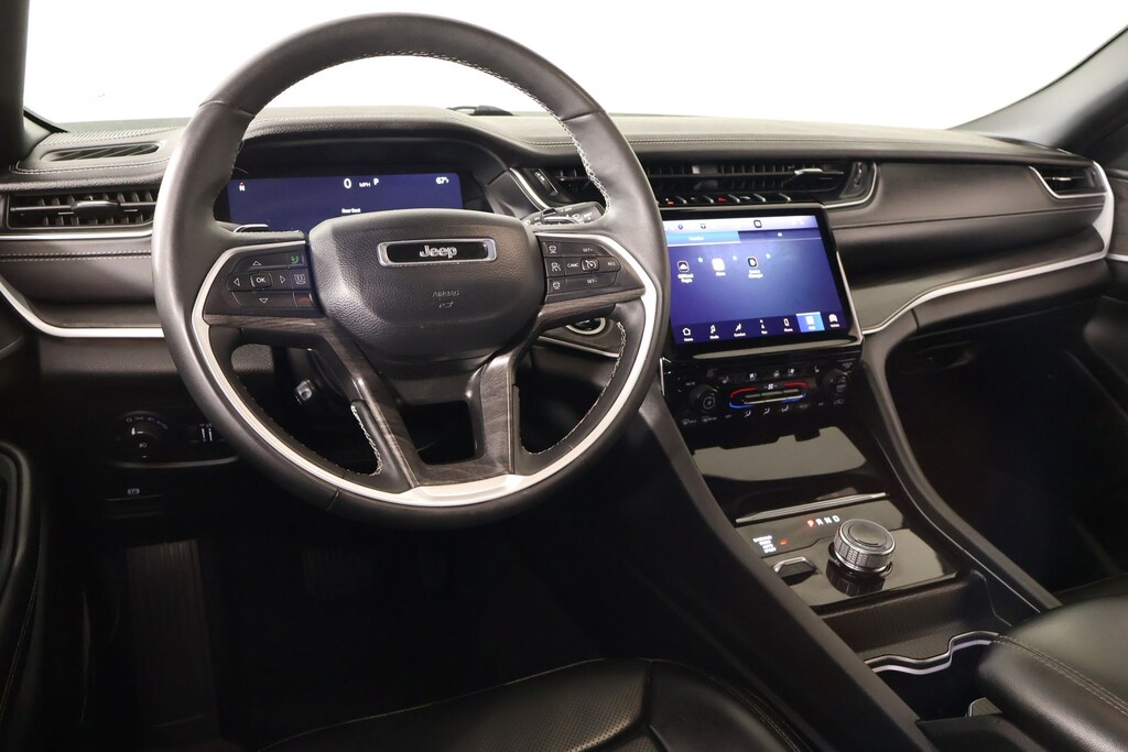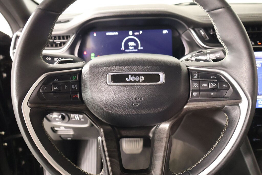 THIS VEHICLE COMES EQUIPPED WITH THE FOLLOWING OPTIONS AND FEATURES: Luxury Tech Group II (2nd Row Manual Window Shades, Auto-Dimming Exterior Driver Mirror, Capri Leatherette w/Axis II Seats, Integrated Off-Road Camera, Intersection Collision Assist System, Memory Steering Column, ParkSense Front/Rear Park Assist w/Stop, Passive Entry - Front/Rear Doors, Liftgate, Power Tilt/Telescope Steering Column, Rain Sensitive Windshield Wipers, Rear Back Up Camera Washer, Rearview Autodim Digital Display Mirror, Surround View Camera System, Ventilated Front Seats, and Wireless Charging Pad), Quick Order Package 23E, Cooper Certified Certified, 3.45 Rear Axle Ratio, 3rd row seats: split-bench, 4-Wheel Disc Brakes, 6 Speakers, ABS brakes, Active Noise Control System, Air Conditioning, Alloy wheels, AM/FM radio: SiriusXM with 360L, Anti-whiplash front head restraints, Audio memory, Auto High-beam Headlights, Automatic temperature control, Brake assist, Bumpers: body-color, Capri Leatherette Seats, Compass, Delay-off headlights, Driver door bin, Driver vanity mirror, Dual front impact airbags, Dual front side impact airbags, Dual-Pane Panoramic Sunroof, Electronic Stability Control, Emergency communication system, Four wheel independent suspension, Front anti-roll bar, Front Bucket Seats, Front Center Armrest w/Storage, Front dual zone A/C, Front fog lights, Front License Plate Bracket, Front reading lights, Fully automatic headlights, Garage door transmitter, Heated door mirrors, Heated front seats, Heated rear seats, Heated steering wheel, Illuminated entry, Interior Rear Facing Camera, Knee airbag, Low tire pressure warning, Manual Fold Seatbacks, Memory seat, Navigation System, Normal Duty Suspension, Occupant sensing airbag, Outside temperature display, Overhead airbag, Overhead console, Panic alarm, ParkView Rear Back-Up Camera, Passenger door bin, Passenger vanity mirror, Power door mirrors, Power driver seat, Power Liftgate, Power passenger seat, Power steering, Power windows, Radio data system, Radio: Uconnect 5 Nav w/10.1" Display, Rear air conditioning, Rear anti-roll bar, Rear reading lights, Rear window defroster, Rear window wiper, Reclining 3rd row seat, Remote keyless entry, Security system, Speed control, Speed-Sensitive Wipers, Split folding rear seat, Spoiler, Steering wheel mounted audio controls, Tachometer, Telescoping steering wheel, Tilt steering wheel, Traction control, Trip computer, Turn signal indicator mirrors, Variably intermittent wipers, Voltmeter, and Wheels: 18" x 8.0" Polished/Painted Aluminum.