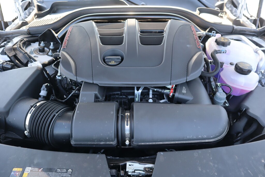 THIS VEHICLE COMES EQUIPPED WITH THE FOLLOWING OPTIONS AND FEATURES: Quick Order Package 22P Scat Pack, Two Tone Paint Group, AWD, Black Artificial Leather, 10 Speakers, 2-Way Manual Adjust Front Head Restraints, 2-Way Power Driver Lumbar Adjust, 4-Wheel Disc Brakes, 8-Way Power Driver Seat Adjust, ABS brakes, Active Noise Control System, Air Conditioning, Alloy wheels, AM/FM radio: SiriusXM w/360L, Automatic temperature control, Black Seats, Brake assist, Bumpers: body-color, Compass, Connectivity - US/Canada, Delay-off headlights, Disassociated Touchscreen Display, Driver door bin, Driver vanity mirror, Dual front impact airbags, Dual front side impact airbags, Electronic Stability Control, Emergency communication system: Dodge Connect, Four wheel independent suspension, Front anti-roll bar, Front Bucket Seats, Front Center Armrest, Front dual zone A/C, Front reading lights, Fully automatic headlights, Garage door transmitter, Heated door mirrors, Heated Exterior Mirrors, Heated Front Seats, Heated front seats, Heated steering wheel, Illuminated entry, Integrated Center Stack Radio, Knee airbag, Leather Shift Knob, Leatherette/Cloth Performance Seats, Low Back Bucket Seats, Low tire pressure warning, Occupant sensing airbag, Outside temperature display, Overhead airbag, Overhead console, Panic alarm, ParkView Rear Back-Up Camera, Passenger door bin, Passenger vanity mirror, Power Adjust Mirrors, Power door mirrors, Power driver seat, Power steering, Power windows, Radio data system, Radio: Uconnect 5 with 12.3" Display, Rear anti-roll bar, Rear reading lights, Rear seat center armrest, Rear window defroster, Remote keyless entry, Security system, Speed control, Split folding rear seat, Spoiler, Sport steering wheel, Steering wheel mounted audio controls, Tachometer, Telescoping steering wheel, Tilt steering wheel, Traction control, Trip computer, Variably intermittent wip