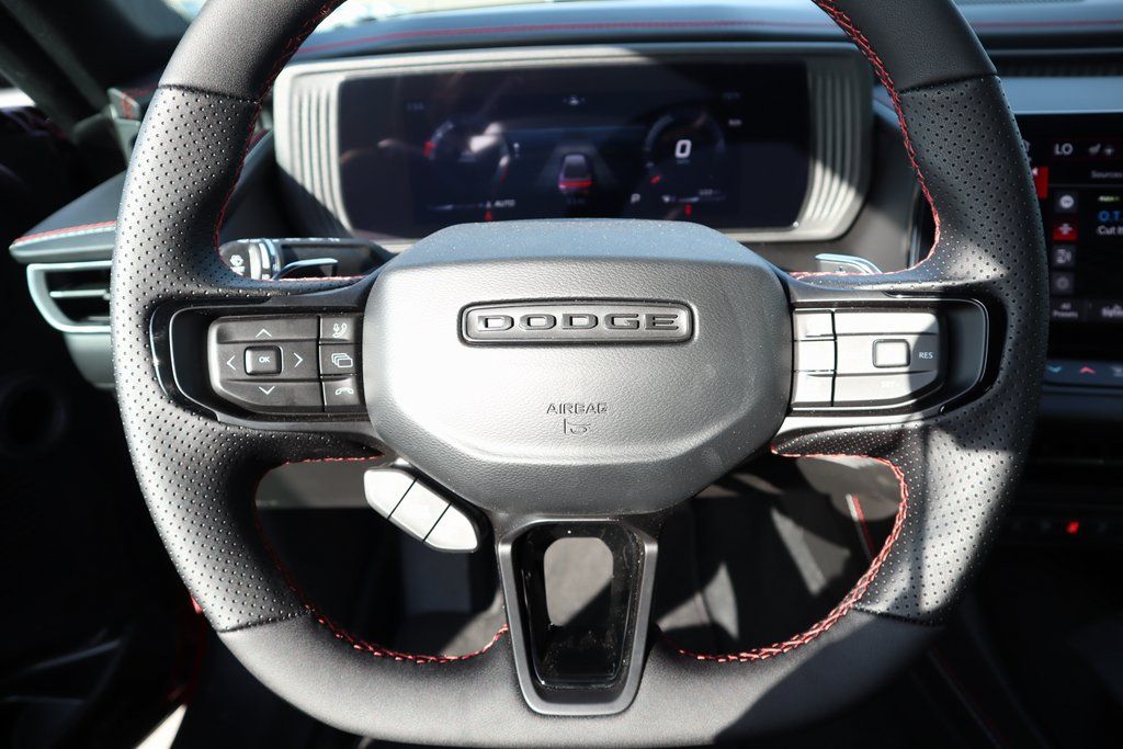 2026 Dodge Charger Quick Order Package 22P Scat Pack, Two Tone Paint Group, Wheel and Tire Package, AWD, Black Artificial Leather, 10 Speakers, 2-Way Manual Adjust Front Head Restraints, 2-Way Power Driver Lumbar Adjust, 4-Wheel Disc Brakes, 4G LTE Wi-Fi Hot Spot, 8-Way Power Driver Seat Adjust, ABS brakes, Active Noise Control System, Air Conditioning, Alloy wheels, AM/FM radio: SiriusXM w/360L, Apple CarPlay/Android Auto, Auto-dimming Rear-View mirror, Automatic temperature control, Black Seats, Brake assist, Bumpers: body-color, Compass, Connectivity - US/Canada, Delay-off headlights, Disassociated Touchscreen Display, Driver door bin, Driver vanity mirror, Dual front impact airbags, Dual front side impact airbags, Electronic Stability Control, Emergency communication system: Dodge Connect, Four wheel independent suspension, Front anti-roll bar, Front Bucket Seats, Front Center Armrest, Front dual zone A/C, Front reading lights, Fully automatic headlights, Garage door transmitter, Heated door mirrors, Heated Exterior Mirrors, Heated Front Seats, Heated front seats, Heated steering wheel, Illuminated entry, Integrated Center Stack Radio, Knee airbag, Leather Shift Knob, Leatherette/Cloth Performance Seats, Low Back Bucket Seats, Low tire pressure warning, Occupant sensing airbag, Outside temperature display, Overhead airbag, Overhead console, Panic alarm, ParkView Rear Back-Up Camera, Passenger door bin, Passenger vanity mirror, Power Adjust Mirrors, Power door mirrors, Power driver seat, Power steering, Power windows, Radio data system, Radio: Uconnect 5 with 12.3" Display, Rear anti-roll bar, Rear reading lights, Rear seat center armrest, Rear window defroster, Remote keyless entry, Security system, Speed control, Split folding rear seat, Spoiler, Sport steering wheel, Steering wheel mounted audio controls, Tachometer, Telescoping steering wheel, Tilt steering wheel, Traction control, Trip computer, Variably intermittent wipers, Wheels: 20" x 10" Aluminum, Wheels: 20" x 11" Aluminum, Wireless Apple CarPlay, and Wireless Google Android Auto.