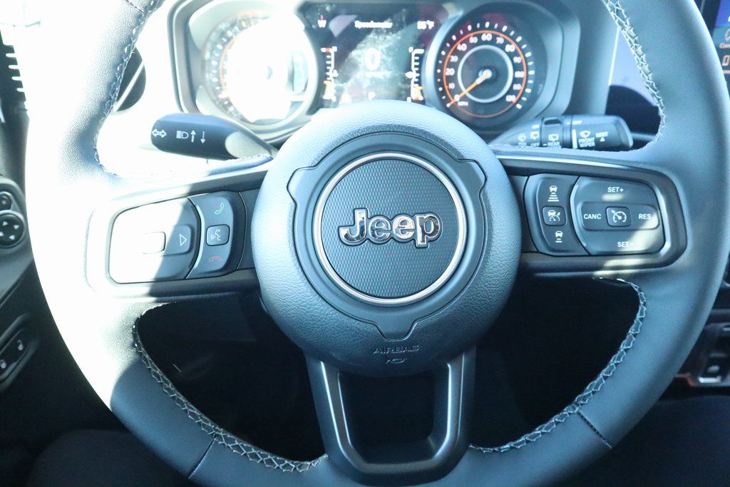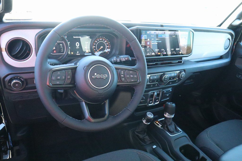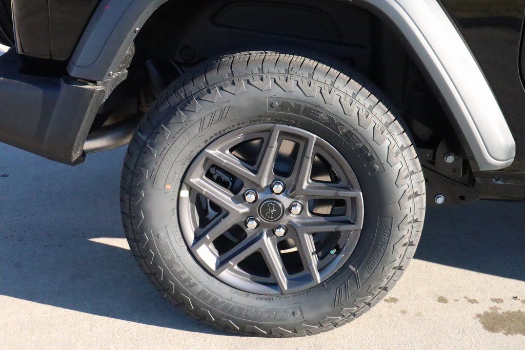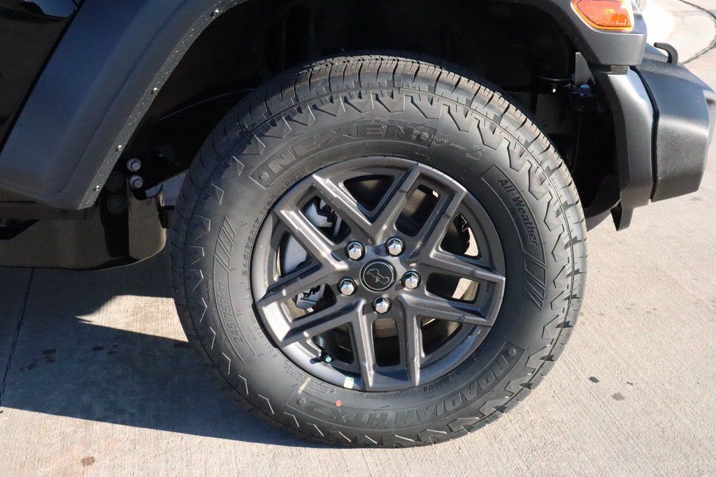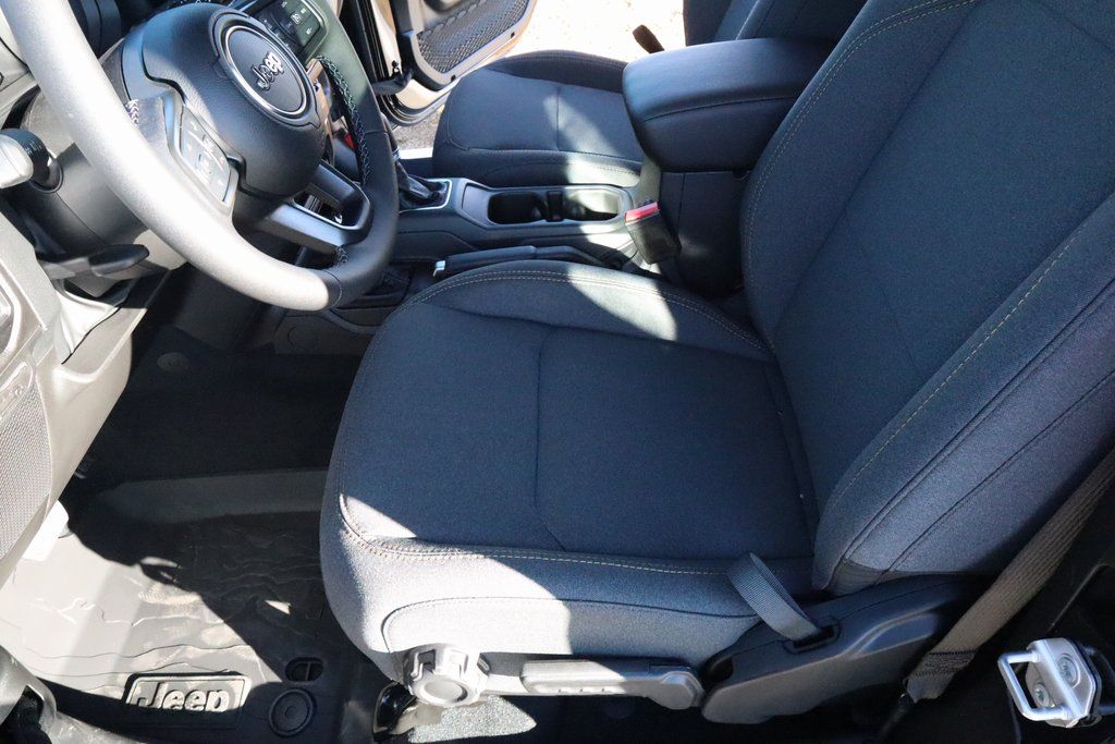 2026 Jeep Wrangler Convenience Group (2-Door Passive Entry, Front Door Locks, Air Conditioning with Auto Temp Control, Air Filtering, Cluster 7.0" TFT Color Display, Emergency/Assistance Call, Heated Front Seats, Heated Steering Wheel, and Universal Garage Door Opener), LED Headlamp and Fog Lamp Group (Front LED Fog Lamps and LED Premium Reflector Headlamps), Quick Order Package 22S Sport S (Advanced Brake Assist, Automatic Headlamps, Corning Gorilla Glass, Deep Tint Sunscreen Windows, Enhanced Adaptive Cruise Control, Full Speed Forward Collision Warning Plus, Power Heated Mirrors, Premium Wrapped Steering Wheel, Security Alarm, Sun Visors with Illuminated Vanity Mirrors, and Wheels: 17" x 7.5" Gray), 12.3" Touchscreen Display, 3.45 Overall Top Gear Ratio, 4-Wheel Disc Brakes, 4G LTE Wi-Fi Hot Spot, 8 Speakers, ABS brakes, Air Conditioning, AM/FM radio: SiriusXM with 360L, Apple CarPlay, Apple CarPlay/Android Auto, Aux Battery, Black 3-Piece Hard Top, Brake assist, Cloth Low-Back Bucket Seats, Compass, Connectivity - US/Canada, Delay-off headlights, Driver door bin, Driver vanity mirror, Dual front impact airbags, Dual front side impact airbags, Electronic Stability Control, For More Info, Call 800-643-2112, Freedom Panel Storage Bag, Front anti-roll bar, Front Bucket Seats, Front Center Armrest w/Storage, Front fog lights, Front reading lights, Google Android Auto, Illuminated entry, Integrated Center Stack Radio, Integrated roll-over protection, Low tire pressure warning, MOPAR All-Weather Floor Mats, Non-Lock Fuel Cap Without Discriminator, Normal Duty Suspension, Occupant sensing airbag, Outside temperature display, Overhead airbag, Panic alarm, ParkView Rear Back-Up Camera, Passenger door bin, Passenger vanity mirror, Power steering, Power windows, Radio data system, Radio: Uconnect 5 with 12.3" Display, Rear anti-roll bar, Rear reading lights, Rear Window Defroster, Rear Window Wiper/Washer, Remote keyless entry, SiriusXM Radio Service, SiriusXM with 360L, Speed control, Steering wheel mounted audio controls, Stop-Start Dual Battery System, Tachometer, Telescoping steering wheel, Tilt steering wheel, Traction control, Trip computer, Variably intermittent wipers, and Wheels: 17" x 7.5" Black Steel Styled.
