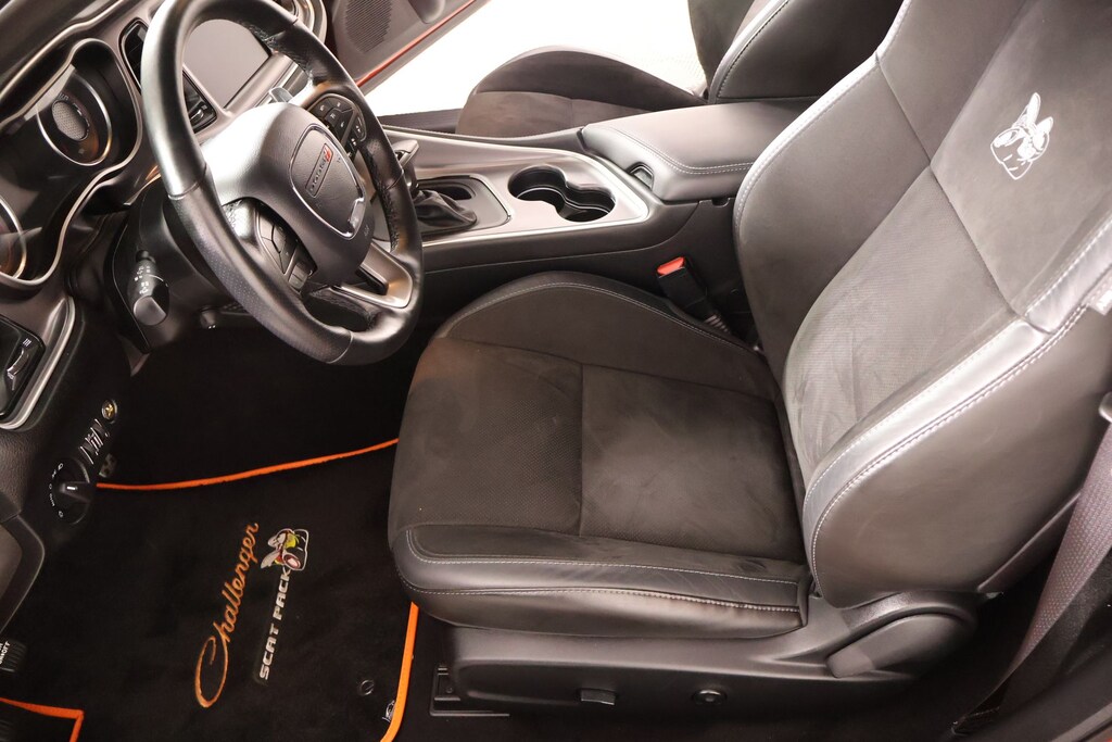2019 Dodge Challenger Alpine Audio Group w/Subwoofer (506 Watt Amplifier, 9 Amplified Speakers w/Subwoofer, and Surround Sound), Driver Convenience Group (Blind Spot & Cross Path Detection, High-Intensity Discharge Headlamps, and Power Multi-Function Foldaway Mirrors), Plus Package (Door Trim Panel w/Ambient Lighting and Heated Steering Wheel), Quick Order Package 24N R/T Scat Pack Widebody (3.09 Rear Axle Ratio, Adaptive Damping Suspension, Brembo 6-Pot Fixed Front Caliper Brakes, Performance Shift Indicator, Wheels: 20" x 11.0" Devil's Rim Aluminum, Widebody Competition Suspension, and Widebody Fender Flares), Technology Group (Auto High Beam Headlamp Control and Rain Sensitive Windshield Wipers), Cooper Certified Certified, 1-Yr SiriusXM Guardian Trial, 4G LTE Wi-Fi Hot Spot, 5-Year SiriusXM Traffic Service, 5-Year SiriusXM Travel Link Service, 8.4" Touchscreen Display, Apple CarPlay, For Details, Visit DriveUconnect.com, Front dual zone A/C, Google Android Auto, GPS Antenna Input, GPS Navigation, HD Radio, Integrated Center Stack Radio, Integrated Voice Command w/Bluetooth, Media Hub (2 USB, AUX), ParkView Rear Back-Up Camera, Radio: Uconnect 4C w/8.4" Display, Remote keyless entry, SiriusXM Satellite Radio, SiriusXM Traffic Plus, SiriusXM Travel Link, Uconnect 4C Nav w/8.4" Display, USB Host Flip, 230MM Rear Axle, 4-Wheel Disc Brakes, 6 Speakers, ABS brakes, Air Conditioning, Alloy wheels, AM/FM radio: SiriusXM, Anti-whiplash front head restraints, Apple CarPlay/Android Auto, Auto-dimming Rear-View mirror, Automatic temperature control, Brake assist, Bumpers: body-color, Center Rear 3-Point Seat Belt, Child Seat Upper Tether Anchorages, Compass, Delay-off headlights, Driver door bin, Driver vanity mirror, Dual front impact airbags, Dual front side impact airbags, Electronic Stability Control, Emergency communication system: SiriusXM Guardian, Four wheel independent suspension, Front anti-roll bar, Front Bucket Seats, Front Center Armrest, Front fog lights, Front Passenger Seat,