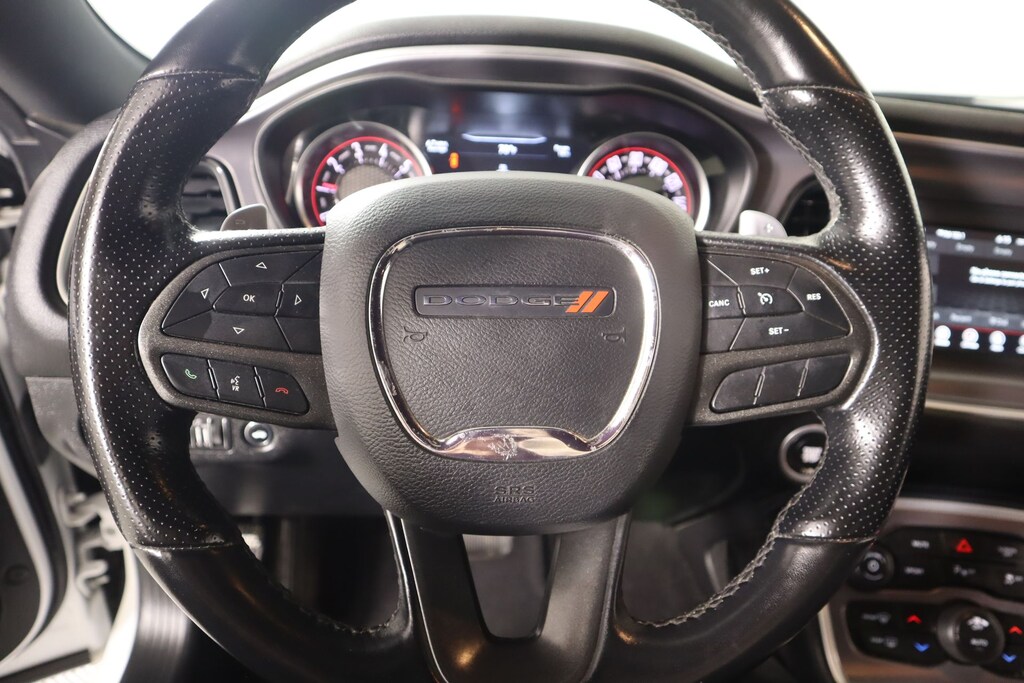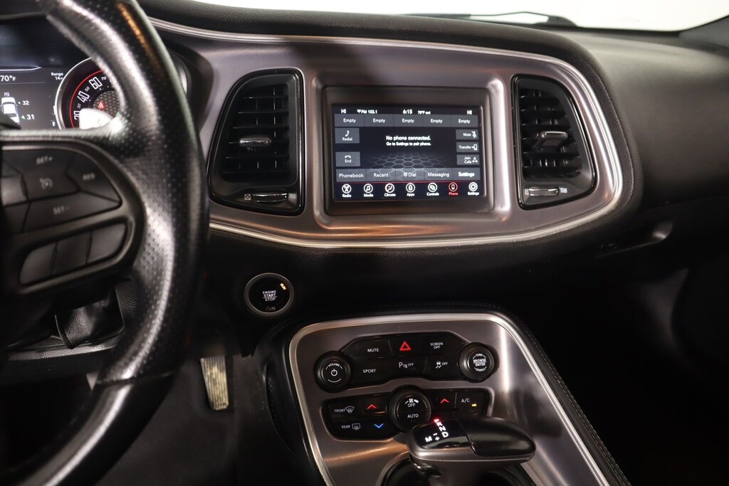 2021 Dodge Challenger Quick Order Package 28H, Front dual zone A/C, Integrated Center Stack Radio, Media Hub (2 USB, AUX), Radio: Uconnect 4 w/7" Display, Remote keyless entry, 230MM Rear Axle, 3.90 Rear Axle Ratio, 4-Wheel Disc Brakes, 6 Speakers, ABS brakes, Air Conditioning, Alloy wheels, AM/FM radio, Anti-whiplash front head restraints, Apple CarPlay, Apple CarPlay/Android Auto, Auto-dimming Rear-View mirror, Automatic temperature control, Brake assist, Bumpers: body-color, Compass, Delay-off headlights, Driver door bin, Driver vanity mirror, Dual front impact airbags, Dual front side impact airbags, Electronic Stability Control, For More Info, Call 800-643-2112, Four wheel independent suspension, Front anti-roll bar, Front Bucket Seats, Front Center Armrest, Front fog lights, Front License Plate Bracket, Front reading lights, Fully automatic headlights, Garage door transmitter, Google Android Auto, GPS Antenna Input, Heated door mirrors, Houndstooth Cloth Performance Seats, Illuminated entry, Integrated Voice Command w/Bluetooth, Leather Shift Knob, Low tire pressure warning, Outside temperature display, Overhead airbag, Overhead console, Panic alarm, ParkView Rear Back-Up Camera, Passenger door bin, Passenger vanity mirror, Power door mirrors, Power driver seat, Power steering, Power windows, Radio data system, Rear anti-roll bar, Rear reading lights, Rear seat center armrest, Rear window defroster, Security system, SiriusXM Radio Service, SiriusXM Satellite Radio, Speed control, Speed-sensing steering, Split folding rear seat, Spoiler, Sport steering wheel, Steering wheel mounted audio controls, Tachometer, Telescoping steering wheel, Tilt steering wheel, Traction control, Trip computer, USB Host Flip, Variably intermittent wipers, and Wheels: 20" x 8" Satin Carbon Aluminum.