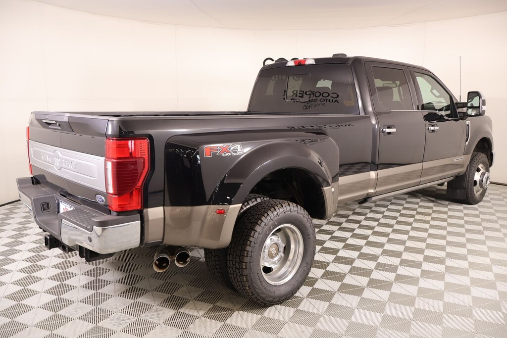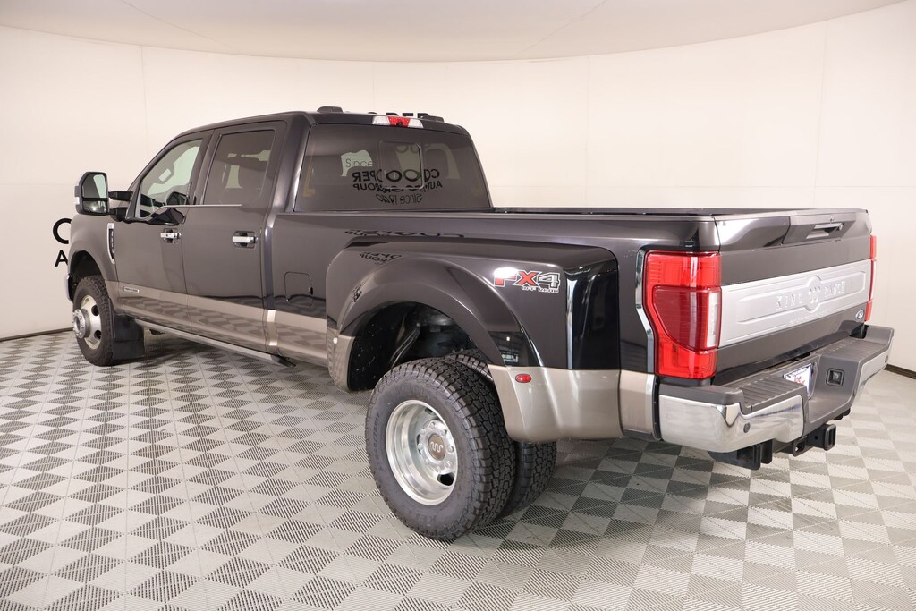 THIS VEHICLE COMES EQUIPPED WITH THE FOLLOWING OPTIONS AND FEATURES: 5th Wheel/Gooseneck Hitch Prep Package, Camper Package, Chrome Package (6" Angular Bright Polished Step Bars, Body-Color Door Handles w/Chrome Insert, Chrome Exhaust Tip, PowerScope Trailer Tow Mirrors w/Heat, and Unique Chrome Mirror Caps), FX4 Off-Road Package (Hill Descent Control, Off-Road Specifically Tuned Shock Absorbers, and Unique FX4 Off-Road Box Decal), GVWR: 14,000 lb Payload Package, King Ranch Ultimate Package (Front Splash Guards/Mud Flaps (Pre-Installed), Multi-Contour Seats, Power-Deployable Running Boards, Quad Beam LED Headlamps & LED Taillamps, and Twin Panel Power Moonroof), Order Code 720A, F-350 SuperDuty King Ranch DRW, 4D Crew Cab, Power Stroke 6.7L V8 DI 32V OHV Turbodiesel, 10-Speed Automatic, 4WD, Brown, Java Leather, 10 Speakers, 397 Amp Alternator, Air Conditioning, AM/FM radio: SiriusXM with 360L, Automatic temperature control, Front dual zone A/C, Front reading lights, Garage door transmitter, Navigation system: Connected Navigation, Radio data system, Radio: B&O Sound System by Bang & Olufsen, Rapid-Heat Supplemental Cab Heater, SiriusXM Radio w/360L, SYNC 4 w/Enhanced Voice Recognition, 17" Forged Polished Aluminum Wheels, 3.55 Axle Ratio, 4-Wheel Disc Brakes, ABS brakes, Adaptive Cruise Control & Collision Warning, Adaptive Steering, Adjustable pedals, Advanced Security Pack Inclination Sensor Removal, Alloy wheels, Auto High-beam Headlights, Auto tilt-away steering wheel, Auto-dimming Rear-View mirror, Brake assist, Chrome Front & Rear Bumpers, Compass, Delay-off headlights, Driver door bin, Driver vanity mirror, Dual front impact airbags, Dual front side impact airbags, Dual rear wheels, Electronic Stability Control, Emergency communication system: SYNC 4 911 Assist, Exterior Parking Camera Rear, Flow-Through Console, Front anti-roll bar, Front Bucket Seats, Front Center Armrest, Front fog lights, Fully automatic headlights, Heated door mirrors, Heated front seats, Heated Rear Seats, Heated steering wheel, Illuminated entry, Illuminated running boards, Leather steering wheel, Limited Slip w/3.55 Axle Ratio, Limited Slip w/3.73 Axle Ratio, Low tire pressure warning, Memory seat, Outside temperature display, Overhead airbag, Overhead console, Panic a