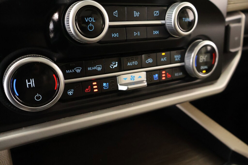 Step inside and be captivated by the Expedition Max's luxurious cabin. The Ebony Black Mesh Grille and 22-inch 12-Spoke Polished Aluminum wheels exude a bold, sophisticated style. The heated and ventilated leather front captain's chairs, along with the heated rear seats, will keep you and your passengers comfortable in any weather. The power moonroof and power liftgate add a touch of convenience and elegance.