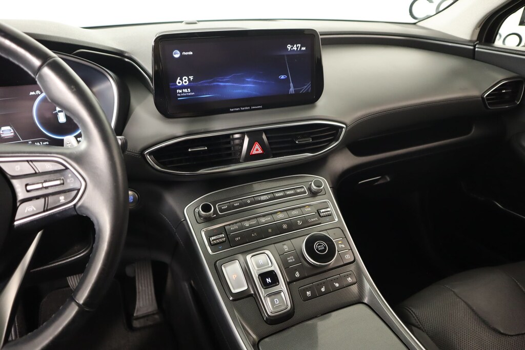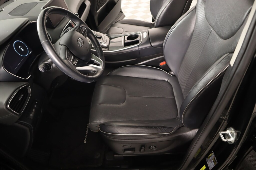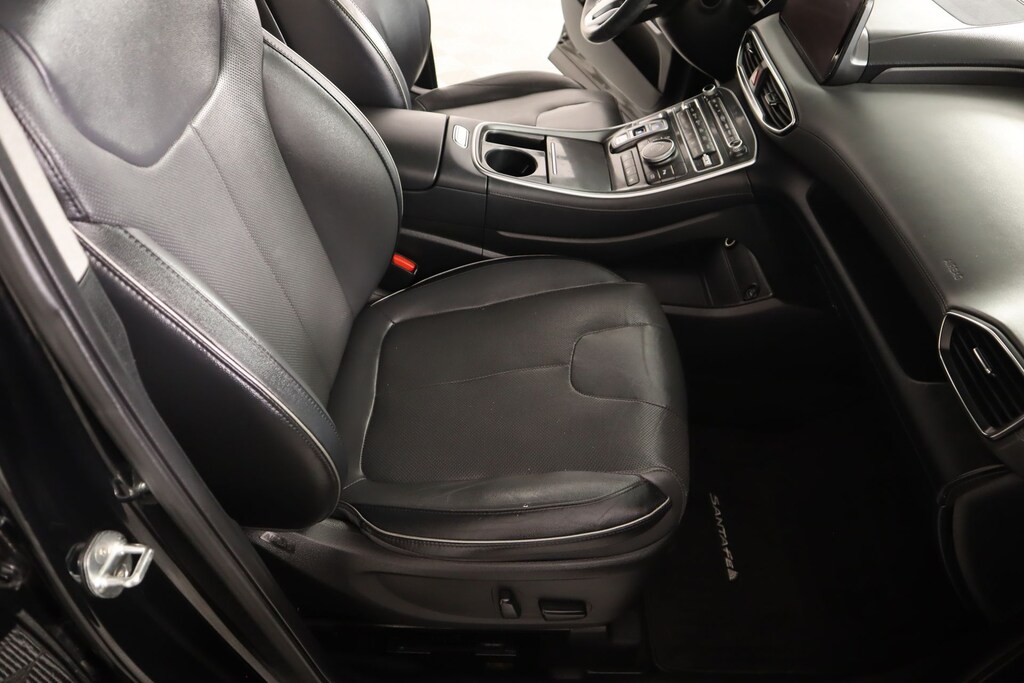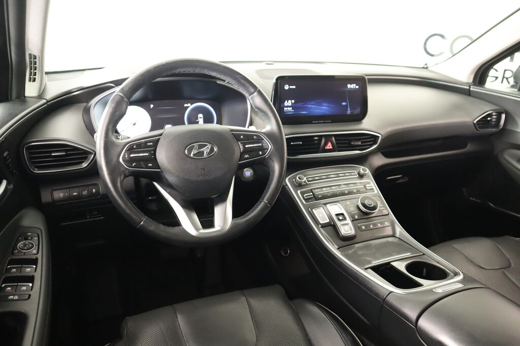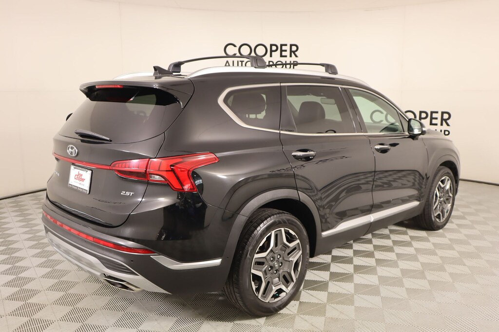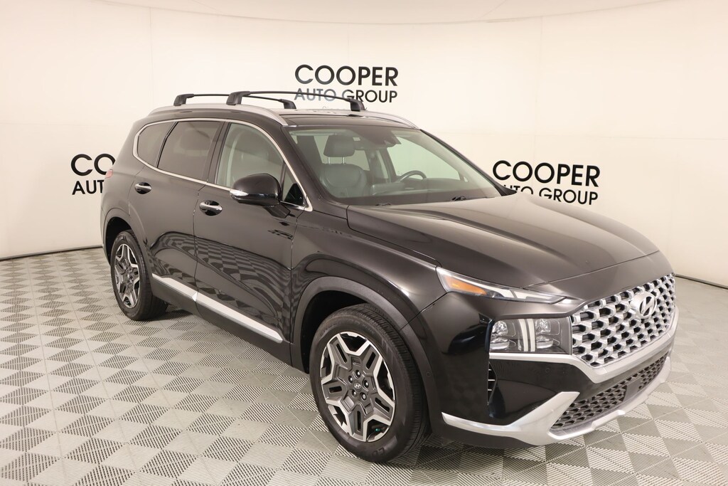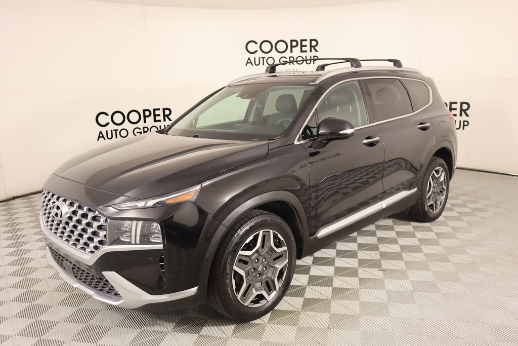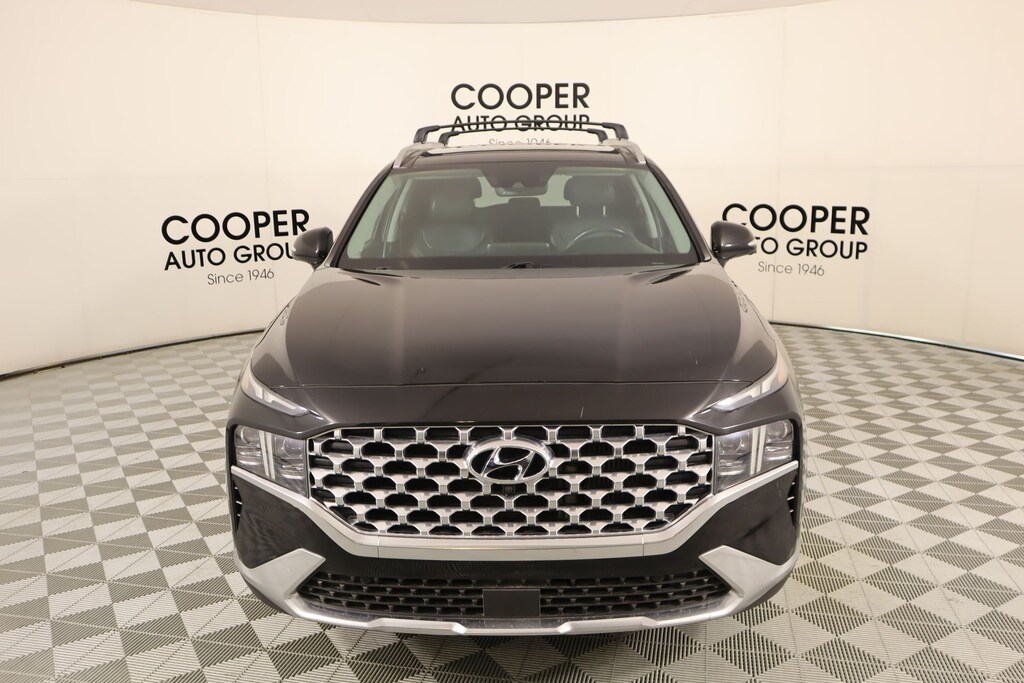 2022 Hyundai Santa Fe Cargo Package (Cargo Net, Cargo Tray, and First Aid Kit), Option Group 01, Cooper Certified Certified, Gray Leather, Front dual zone A/C, Memory seat, Navigation System, Power driver seat, Radio: AM/FM Harman Kardon Display Audio, Remote keyless entry, 12 Speakers, 4-Wheel Disc Brakes, ABS brakes, Air Conditioning, Alloy wheels, AM/FM radio: SiriusXM, Apple CarPlay & Android Auto, Auto High-beam Headlights, Auto-dimming Rear-View mirror, Automatic temperature control, Axle Ratio: 3.316, Brake assist, Bumper Applique, Bumpers: body-color, Cargo Cover/Screen, Carpeted Floor Mats, Delay-off headlights, Driver door bin, Driver vanity mirror, Dual front impact airbags, Dual front side impact airbags, Electronic Stability Control, Emergency communication system, Four wheel independent suspension, Front anti-roll bar, Front Bucket Seats, Front Center Armrest, Front reading lights, Fully automatic headlights, Garage door transmitter: HomeLink, harman/kardon® Speakers, Heated & Ventilated Front Bucket Seats, Heated door mirrors, Heated front seats, Heated rear seats, Heated steering wheel, Illuminated entry, Leather Seat Trim, Leather steering wheel, Low tire pressure warning, Occupant sensing airbag, Outside temperature display, Overhead airbag, Overhead console, Panic alarm, Passenger door bin, Passenger vanity mirror, Power door mirrors, Power Liftgate, Power moonroof, Power passenger seat, Power steering, Power windows, Rain sensing wipers, Rear anti-roll bar, Rear seat center armrest, Rear window defroster, Rear window wiper, Roof Rack Cross Bars, Security system, Speed control, Speed-sensing steering, Split folding rear seat, Spoiler, Steering wheel mounted audio controls, Tachometer, Telescoping steering wheel, Tilt steering wheel, Traction control, Trip computer, Turn signal indicator mirrors, Variably intermittent wipers, Ventilated front seats, Wheel Locks, and Wheels: 19" x 7.5J Alloy.