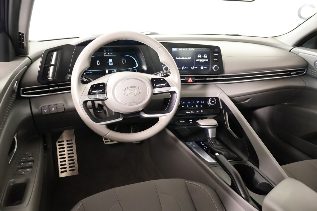 Clean Carfax, One Owner, Bluetooth, Apple CarPlay, Android Auto, Back Up Camera, Elantra SEL Sport, 4D Sedan, I4, CVT, FWD, Intense Blue, Gray Cloth, 17" x 7.0J Alloy Wheels, 4-Wheel Disc Brakes, 6 Speakers, ABS brakes, Air Conditioning, Alloy wheels, AM/FM radio, Apple CarPlay & Android Auto, Auto High-beam Headlights, Automatic temperature control, Brake assist, Bumpers: body-color, Cargo Net, Cargo Side Bins, Carpeted Floor Mats, Delay-off headlights, Driver door bin, Driver vanity mirror, Dual front impact airbags, Dual front side impact airbags, Electronic Stability Control, Exterior Parking Camera Rear, First Aid Kit, Front anti-roll bar, Front Bucket Seats, Front Center Armrest, Front dual zone A/C, Front reading lights, Front wheel independent suspension, Fully automatic headlights, Illuminated entry, Leather Shift Knob, Leather steering wheel, Low tire pressure warning, Occupant sensing airbag, Option Group 01, Outside temperature display, Overhead airbag, Overhead console, Panic alarm, Passenger door bin, Passenger vanity mirror, Power door mirrors, Power steering, Power windows, Premium Cloth Seat Trim, Radio: AM/FM/HD Display Audio, Rear side impact airbag, Rear window defroster, Remote keyless entry, Reversible Cargo Tray, Security system, Speed control, Speed-sensing steering, Spoiler, Steering wheel mounted audio controls, Tachometer, Telescoping steering wheel, Tilt steering wheel, Traction control, Trip computer, Variably intermittent wipers, Wheel Locks.