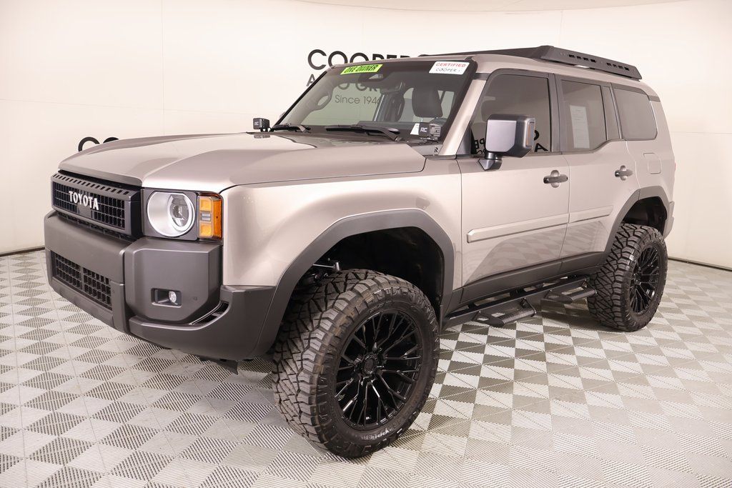 2025 Toyota Land Cruiser Cooper Certified Certified, 2.4L 4-Cylinder, Black Leather, Front dual zone A/C, Radio: Toyota Audio Multimedia System, Remote keyless entry, 4-Wheel Disc Brakes, ABS brakes, Air Conditioning, Alloy wheels, AM/FM radio: SiriusXM, Apple CarPlay/Android Auto, Auto High-beam Headlights, Auto-dimming Rear-View mirror, Automatic temperature control, Brake assist, Compass, Delay-off headlights, Driver door bin, Driver vanity mirror, Dual front impact airbags, Dual front side impact airbags, Electronic Stability Control, Emergency communication system: Safety Connect (up to 10-year trial subscription), Exterior Parking Camera Rear, Front anti-roll bar, Front Bucket Seats, Front Center Armrest, Front fog lights, Front reading lights, Front wheel independent suspension, Fully automatic headlights, Garage door transmitter: HomeLink, Heated front seats, Heated steering wheel, Knee airbag, Leather Shift Knob, Leather steering wheel, Low tire pressure warning, Occupant sensing airbag, Outside temperature display, Overhead airbag, Overhead console, Panic alarm, Passenger door bin, Passenger vanity mirror, Power door mirrors, Power steering, Power windows, Radio data system, Rain sensing wipers, Rear air conditioning, Rear anti-roll bar, Rear reading lights, Rear seat center armrest, Rear window defroster, Rear window wiper, Security system, Speed control, Speed-sensing steering, Split folding rear seat, Spoiler, Steering wheel mounted audio controls, Telescoping steering wheel, Tilt steering wheel, Traction control, Trip computer, Turn signal indicator mirrors, and Variably intermittent wipers.